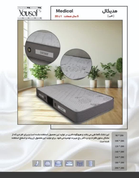 تشک تخت برند یوسف مدل مدیکال ( مخصوص کمر درد ) 5 سال ضمانت