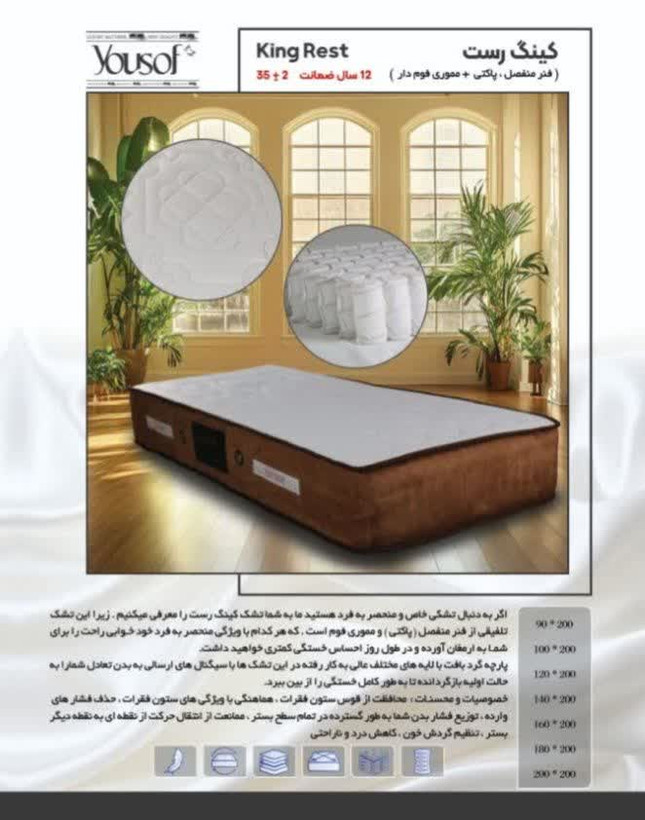 تشک تخت برند یوسف مدل کینگ رست 12 سال ضمانت